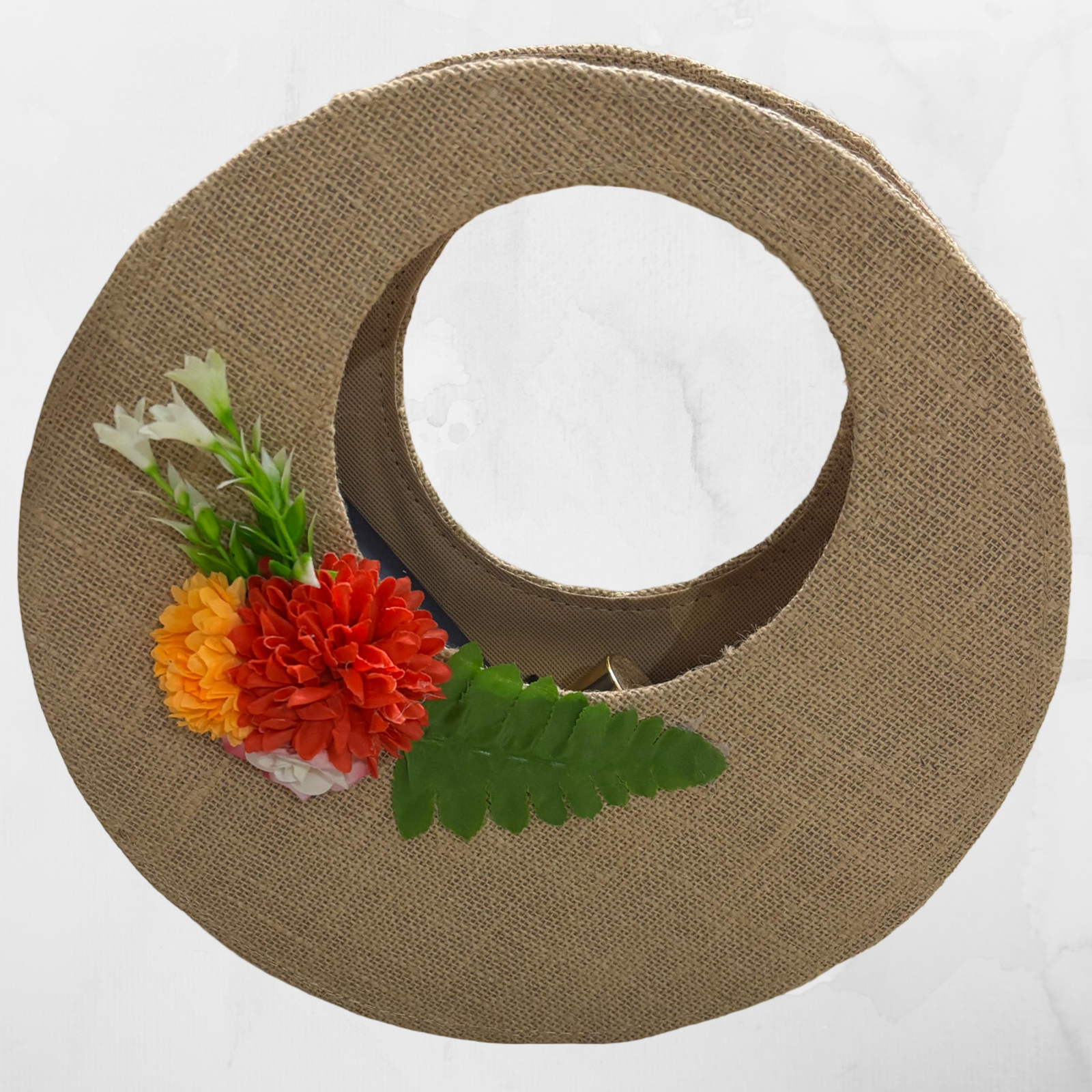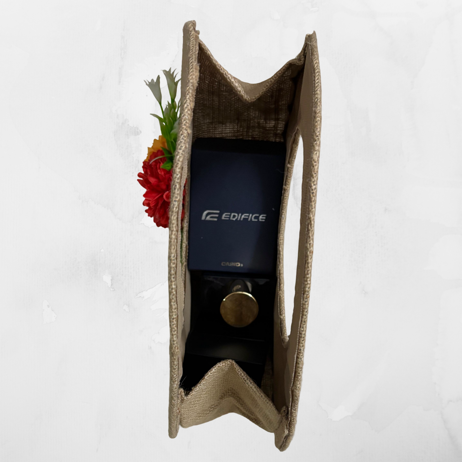 The EcoBloom Round Gift Bag is a unique and elegant way to present your gifts while embracing sustainable living. Crafted from eco-friendly jute, this beautifully designed circular bag stands out with its modern shape and natural texture. The dual round handles create a stylish silhouette while ensuring a comfortable grip, making it both functional and eye-catching. Accented with a decorative floral detail, it adds a charming and festive touch, perfect for special occasions or thoughtful gifting. Its compact yet spacious interior is ideal for carrying cosmetics, accessories, small hampers, or premium gifts. Reusable, durable, and biodegradable, the EcoBloom Round Gift Bag is a perfect blend of creativity, style, and environmental responsibility.