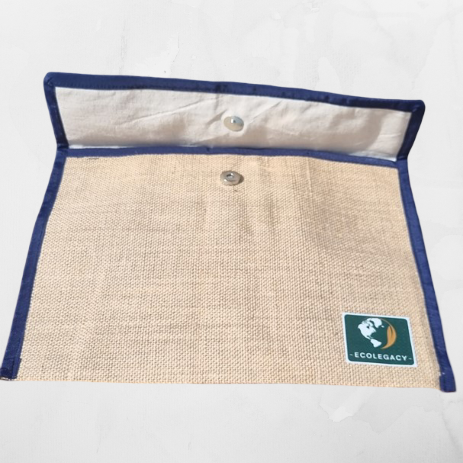 The EcoLegacy Jute File Folder is a smart and sustainable way to organize your documents while making an eco-conscious choice. Crafted from natural jute fabric with durable stitched edges, this folder offers a sturdy yet lightweight design that keeps your papers safe and neatly arranged. The flap closure provides added protection, making it ideal for carrying important documents, files, or notes during work, college, or meetings. Its minimal, earthy look combined with subtle colored borders gives it a clean and professional appearance. Reusable and biodegradable, the EcoLegacy File Folder is a practical alternative to plastic folders, helping you stay organized while supporting a greener lifestyle.